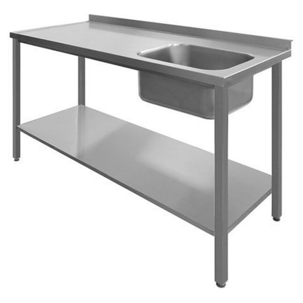 Приставной стол Техно-ТТ СПМ-533/1207П предназначен для совместного использования с посудомоечными машинами для расстановки и хранения посуды и кухонного инвентаря, а также для мытья и ополаскивания продуктов и посуды в моечных отделениях на предприятиях общественного питания и торговли. Модель оснащена цельнотянутой емкостью, бортом и регулируемыми по высоте ножками. Разборный каркас выполнен из трубы 40х40х1,2 мм нержавеющей стали AISI 430, столешница, ванна и полка - из нержавеющей стали AISI 304.