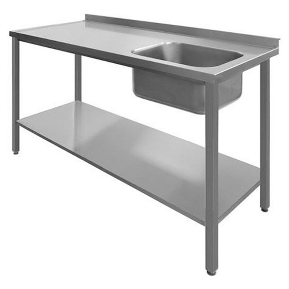 Приставной стол Техно-ТТ СПМ-533/607 предназначен для совместного использования с посудомоечными машинами для расстановки и хранения посуды и кухонного инвентаря, а также для мытья и ополаскивания продуктов и посуды в моечных отделениях на предприятиях общественного питания и торговли. Модель оснащена цельнотянутой емкостью, бортом и регулируемыми по высоте ножками. Разборный каркас выполнен из трубы 40х40х1,2 мм нержавеющей стали AISI 430, столешница, полка и ванна - из нержавеющей стали AISI 304.