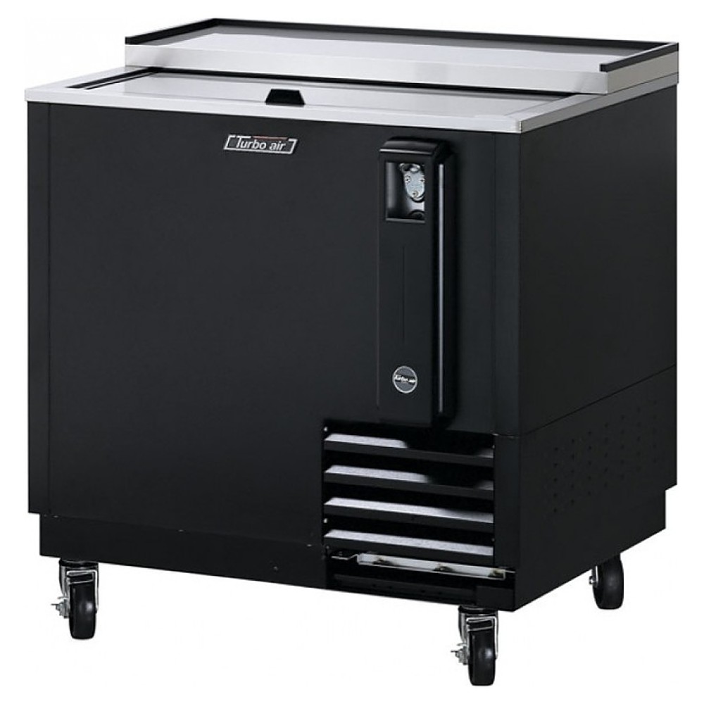 Барный холодильник Turbo air TBC-36SB предназначен для охлаждения и кратковременного хранения напитков на предприятиях общественного питания и торговли. Корпус выполнен из оцинкованной стали, покрытой износостойким черным винилом, с применением полиуретановой теплоизоляции высокой плотности и уплотнения из теплоэффективного АБС-пластика (акрилонитрилбутадиенстирола), не пропускающего конденсата, весь внутренний периметр и дверные направляющие - из нержавеющей стали, регулируемые полки - из проволоки толщиной 10 мм с виниловым покрытием.