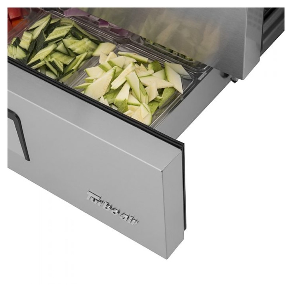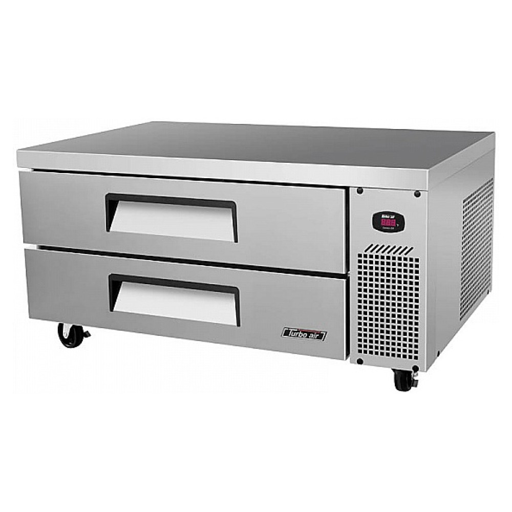 Шеф-база Turbo air TCBE-48SDR-N предназначена для обработки, охлаждения, заморозки и длительного хранения пищевых продуктов на предприятиях общественного питания и торговли. Модель оснащена столешницей, 2 ящиками и 4 колесами. Корпус, столешница и ящики выполнены из нержавеющей стали, изоляция - из полиуретана высокой плотности.