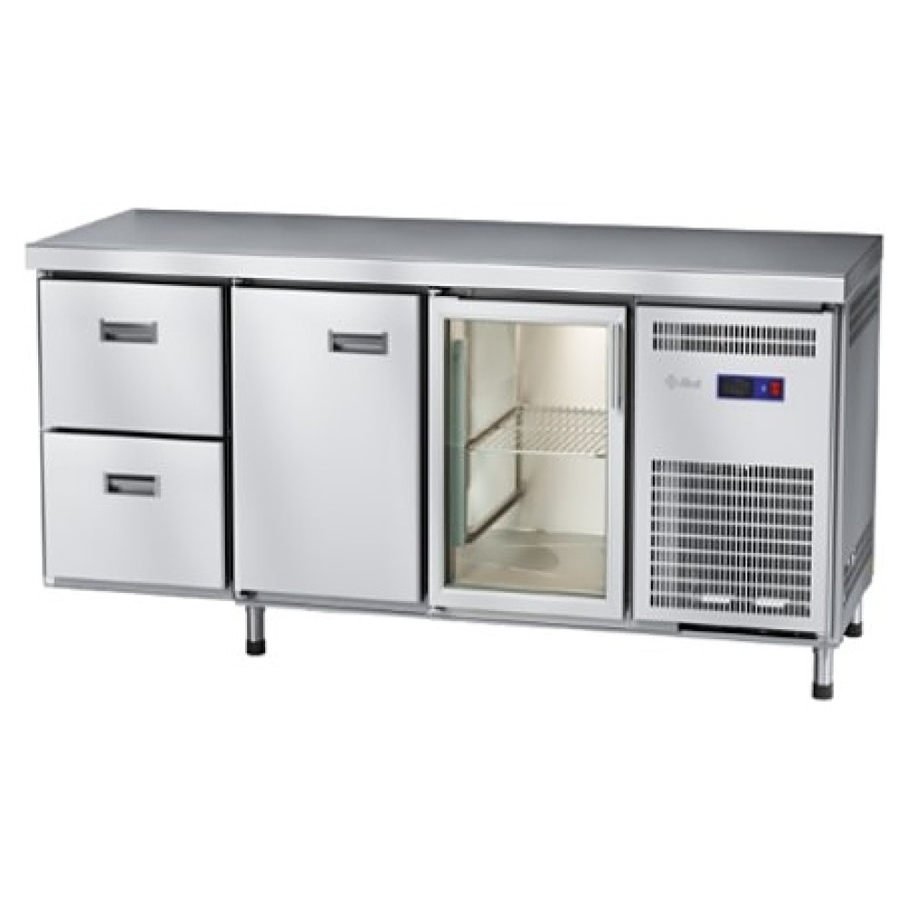 Холодильный стол Abat СХС-70-02 предназначен для раскатки теста, обработки ингредиентов для приготовления блюд, охлаждения и кратковременного хранения скоропортящихся продуктов и напитков на предприятиях общественного питания и торговли. Модель оснащена оснащена неохлаждаемой рабочей поверхностью, распашной стеклянной дверцей с уплотнителями с магнитной вставкой слева, распашной дверцей с уплотнителями с магнитной вставкой посередине, 2 ящиками справа и регулируемыми по высоте ножками.