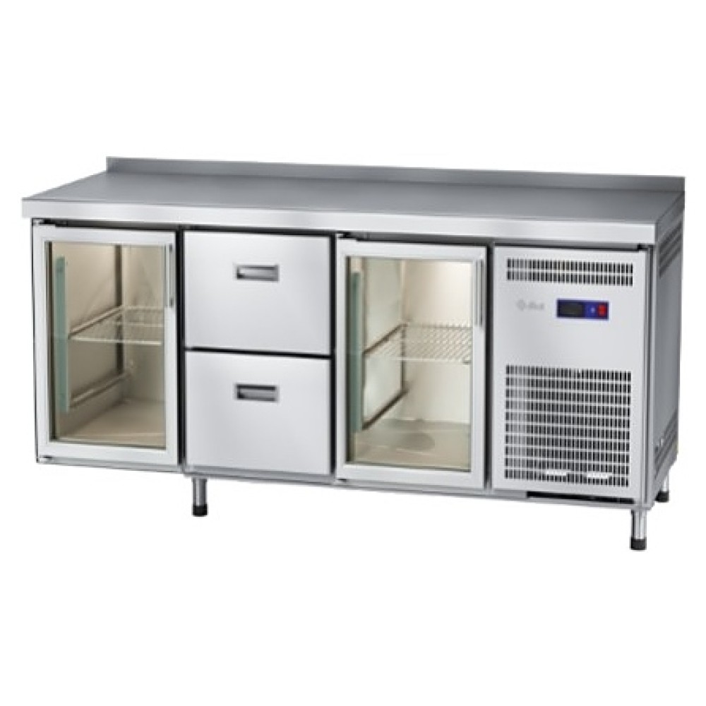 Холодильный стол Abat СХС-70-02 предназначен для раскатки теста, обработки ингредиентов для приготовления блюд, охлаждения и кратковременного хранения скоропортящихся продуктов и напитков на предприятиях общественного питания и торговли. Модель оснащена оснащена неохлаждаемой рабочей поверхностью, 2 распашными стеклянными дверцами с уплотнителями с магнитной вставкой (слева и справа), 2 ящиками посередине и регулируемыми по высоте ножками.