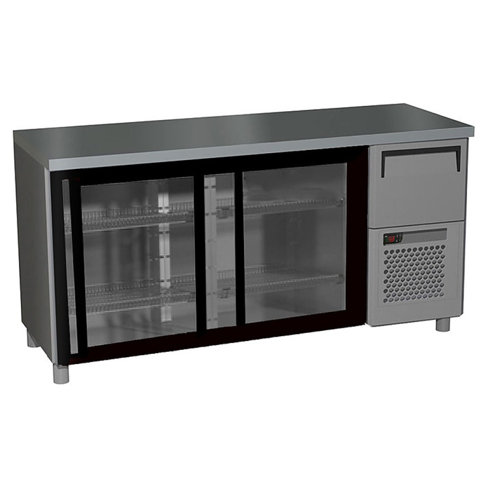 Холодильный стол Сarboma T57 M2-1-C 0430-2 (BAR-360К) предназначен для раскатки теста, обработки ингредиентов для приготовления блюд, охлаждения и кратковременного хранения скоропортящихся продуктов и напитков на предприятиях общественного питания и торговли. Модель оснащена 2 раздвижными дверьми-купе, охлаждаемым ящиком над агрегатом, 4 полками и регулируемыми ножками высотой от 90 до 110 мм. Цельнозаливной корпус выполнен из нержавеющей стали, дверцы - из стекла.