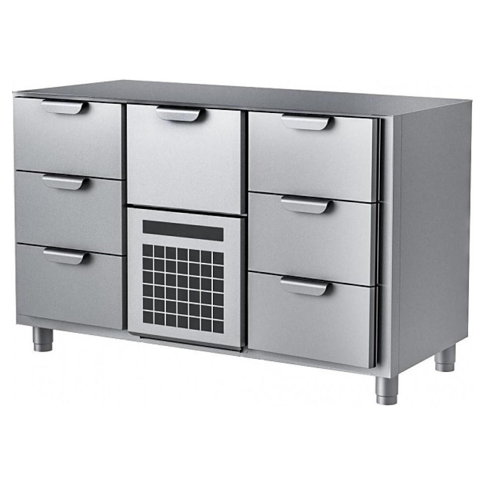 Холодильный стол HappyChef TC B 3-CBR-3 предназначен для хранения предварительно охлажденных пищевых продуктов и напитков на предприятиях общественного питания и торговли. Модель оснащена секцией с компрессорным холодильным агрегатом со съемной холодильной кассетой (Россия) с нижним центральным расположением и верхним выдвижным ящиком, секцией слева и секцией справа с 3 выдвижными ящиками в каждой и электронной панелью управления, ящики имеют короткие горизонтальные рукоятки в верхней части. Корпус выполнен из нержавеющей стали марки AISI 430.