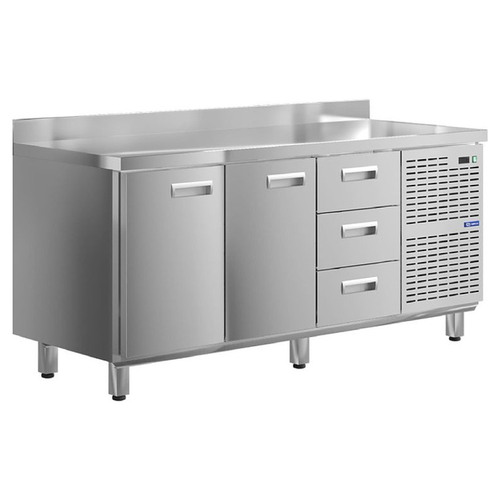 Холодильный стол KAYMAN KСХ-113/70 предназначен для охлаждения, хранения и обработки пищевых продуктов в ресторанах, барах, кафе, столовых, на профессиональных кухнях и пищевых производствах. Конструкция дверей позволяет осуществлять быструю загрузку и выгрузку продуктов, на прочной столешнице можно резать, раскатывать и отбивать полуфабрикаты. Модель оснащена 3 секциями с 2 дверьми, 3 мелкими ящиками и холодильным агрегатом справа. Корпус выполнен из высококачественной нержавеющей стали, отличающейся прочностью и долговечностью.
