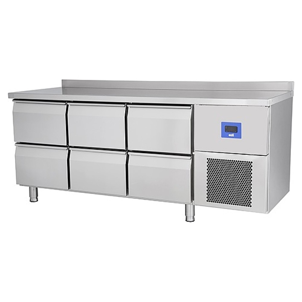 Холодильный стол OZTI 370.02 NMV HC E4 серии 700 предназначен для обработки, охлаждения и кратковременного хранения различных пищевых продуктов на предприятиях пищевой промышленности, общественного питания и торговли. Модель оснащена встроенным холодильным агрегатом, холодильной камерой с 3 рядами выдвижных ящиков – по 2 в каждом ряду, расположенными в правой части фронта термовыводящей решеткой и панелью управления с дисплеем. Внутренняя облицовка камеры и опоры выполнены из высококачественной нержавеющей стали, теплоизоляция – из экологически безопасного полиуретана высокой плотности.