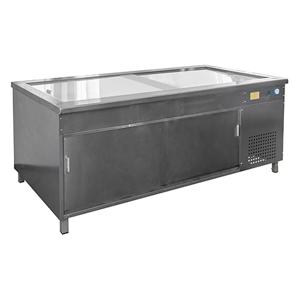 Холодильный стол Пищевые Технологии СОЭП-Р предназначен для краткосрочного хранения хранения предварительно охлажденной или замороженной рыбы и других продуктов на предприятиях общественного питания и торговли. Модель оснащена закрытой нишей для хранения инвентаря и регулируемыми по высоте ножками. Корпус выполнен из нержавеющей и окрашенной сталей.