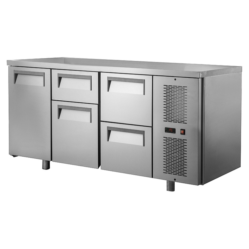 Холодильный стол POLAIR TM3GN-012-GС предназначен для хранения продуктов и обработки ингредиентов на рабочей поверхности на предприятиях общественного питания и торговли. Модель оснащена 4 ящиками разного размера. Цельнозаливной корпус и двери изготовлены из нержавеющей стали, обеспечивающей механическую прочность, термоизоляцию, герметичность и долговечность стола, полки - из окрашенной оцинкованной проволки. Оборудование рассчитано на работу при температуре окружающей среды до 43 °С и относительной влажности воздуха до 80%.