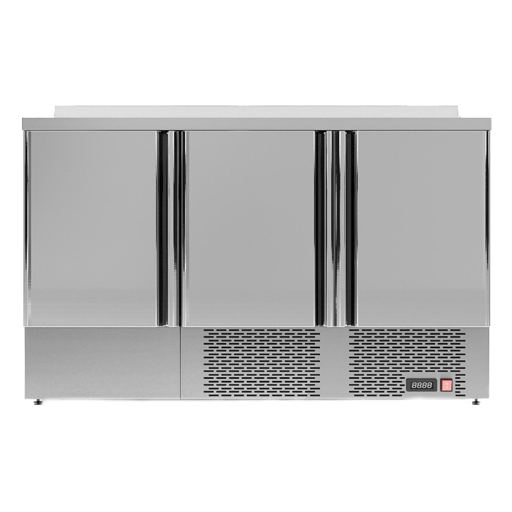 Холодильный стол POLAIR TMi3GN-G серии Grande предназначен для хранения продуктов и обработки ингредиентов на рабочей поверхности на предприятиях общественного питания и торговли. Цельнозаливной корпус и двери изготовлены из нержавеющей стали, обеспечивающей механическую прочность, термоизоляцию, герметичность и долговечность стола, полки - из окрашенной оцинкованной проволки. Оборудование рассчитано на работу при температуре окружающей среды до 43 °С и относительной влажности воздуха до 80%.