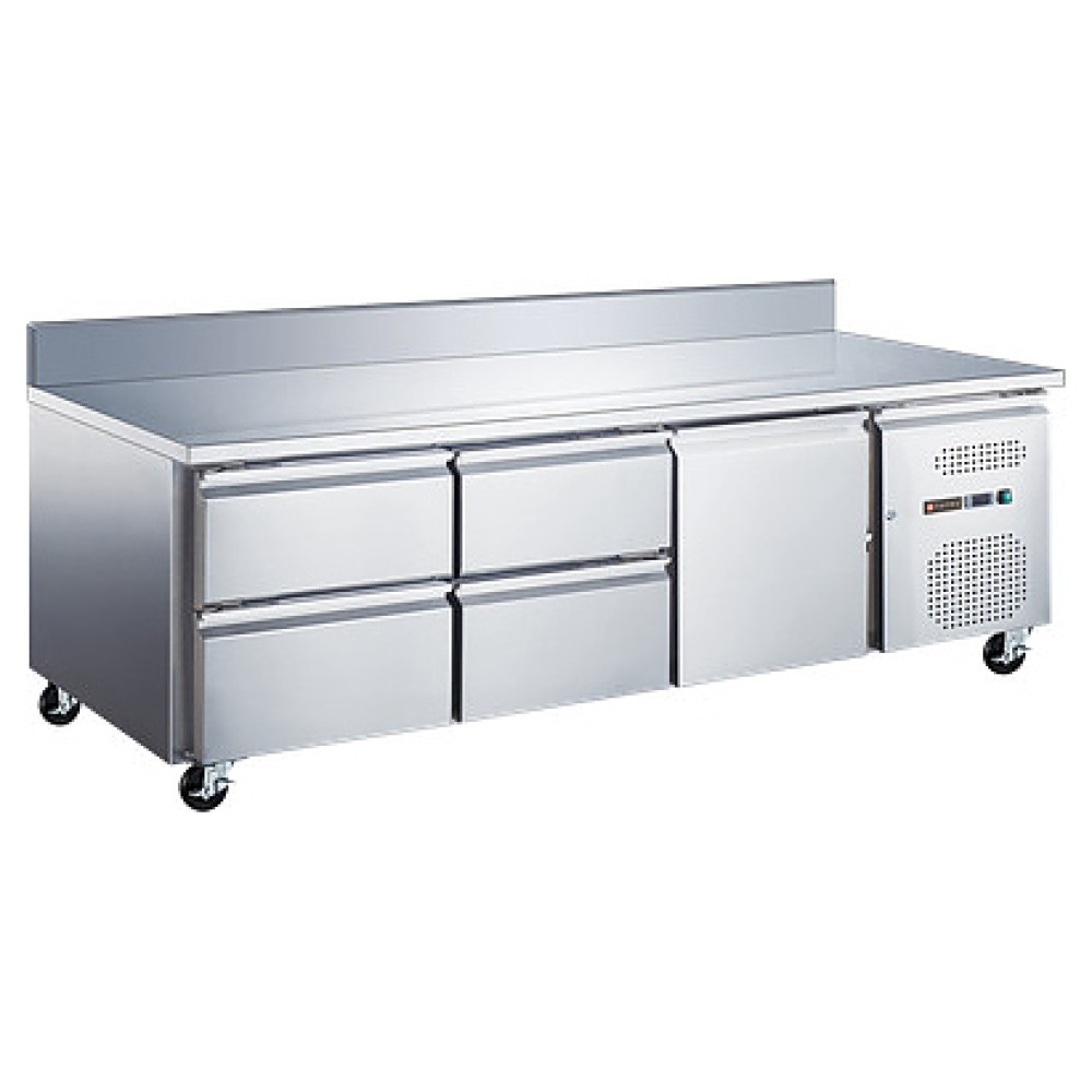 Холодильный стол Tatra TRTGN1D4 TN SB предназначен для хранения предварительно охлажденных мясных и рыбных полуфабрикатов, заготовок для салатов, молочной продукции, напитков, а также раскатки теста и обработки пищевых продуктов на предприятиях общественного питания и торговли. Модель оснащена встроенным компрессорным холодильным агрегатом с боковым расположением, электронным контроллером с цифровым дисплеем индикации на фронтальной панели, столешницей с задним бортом, холодильной камерой с 3 секциями: 1 – с распашной дверью и 2 – с 2 выдвижными ящиками в каждой. Корпус выполнен из высококачественной нержавеющей стали.