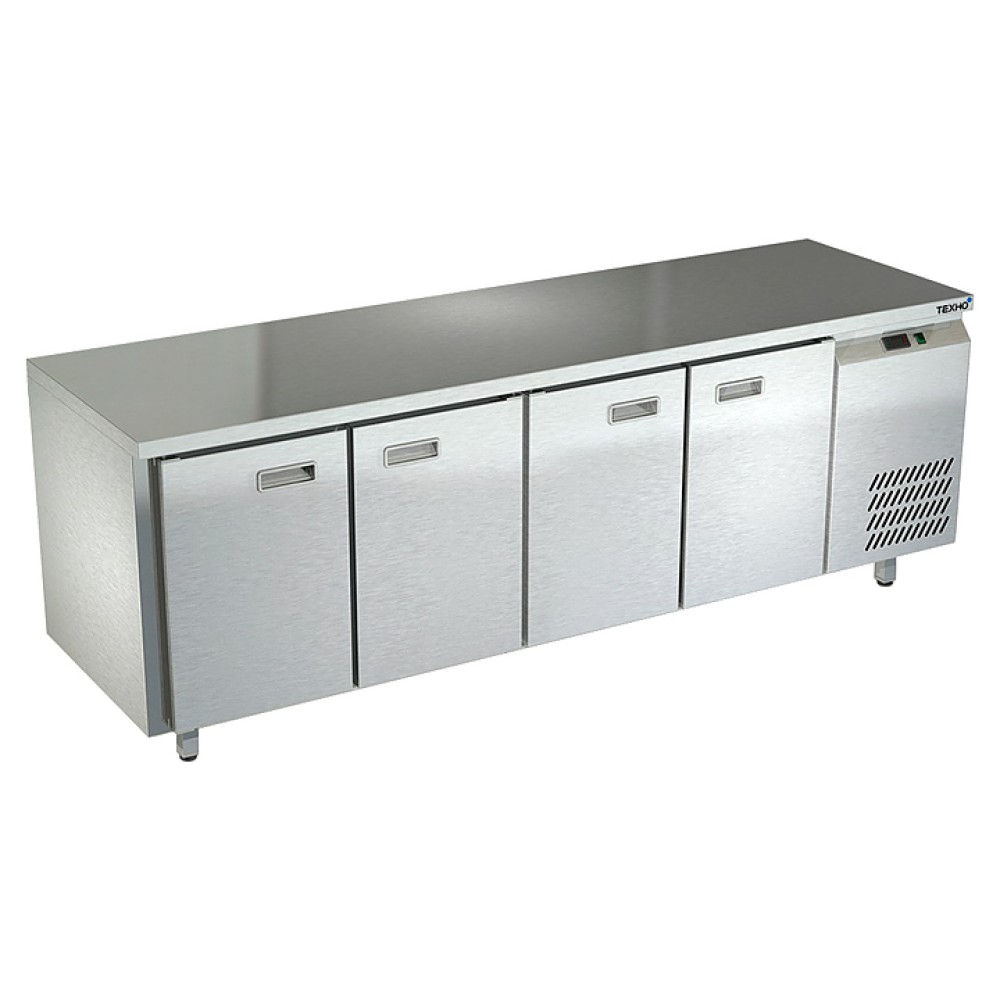 Холодильный стол Техно-ТТ СПБ/О-121/40-2206 предназначен для раскатки теста, обработки, охлаждения и кратковременного хранения продуктов и напитков на предприятиях общественного питания и торговли. Модель оснащена 4 секциями с 4 дверьми, петлями-доводчиками (Польша), регулируемой по высоте полкой-решеткой и круглыми ножками, регулируемыми по высоте на 50 мм (Италия). Корпус выполнен из нержавеющей стали AISI 430, задняя стенка и дно - из оцинкованной стали.
