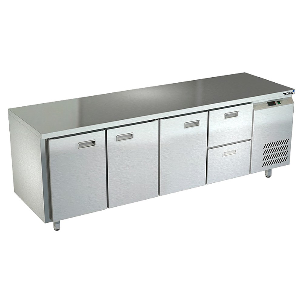 Холодильный стол Техно-ТТ СПБ/О-122/32-2206 предназначен для раскатки теста, обработки, охлаждения и кратковременного хранения продуктов и напитков на предприятиях общественного питания и торговли. Модель оснащена 3 секциями с 3 дверьми и регулируемыми полками, 1 секцией с 2 ящиками, направляющими с доводчиками (Австрия), петлями-доводчиками (Польша) и круглыми ножками, регулируемыми по высоте на 50 мм (Италия). Корпус выполнен из нержавеющей стали AISI 430, задняя стенка и дно - из оцинкованной стали.