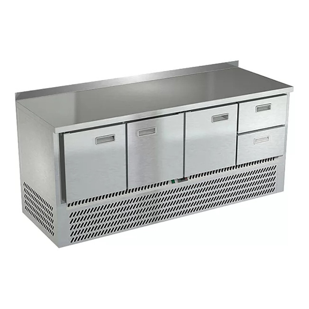 Холодильный стол Техно-ТТ СПН/О-222/32-1907 предназначен для раскатки теста, обработки, охлаждения и кратковременного хранения продуктов и напитков на предприятиях общественного питания и торговли. Модель оснащена компрессором (Испания), каждая секция - направляющими и сетчатой полкой, двери и ящики - доводчиками. Корпус выполнен из нержавеющей стали, задняя стенка и дно - из оцинкованной стали.