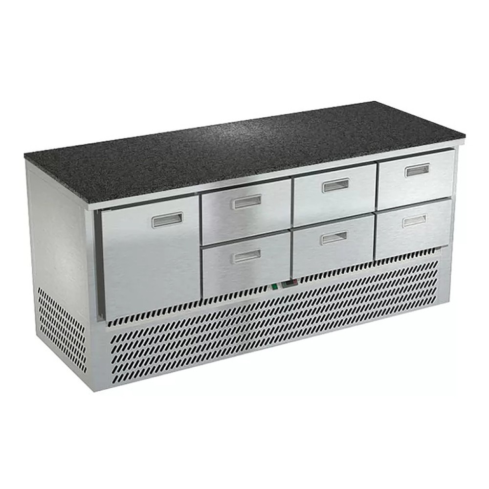 Холодильный стол Техно-ТТ СПН/О-322/16-1906 предназначен для раскатки теста, обработки, охлаждения и кратковременного хранения продуктов и напитков на предприятиях общественного питания и торговли. Модель оснащена компрессором (Испания), секция - направляющими и сетчатой полкой, дверь и ящики - доводчиками. Корпус выполнен из нержавеющей стали, задняя стенка и дно - из оцинкованной стали. Столешница из камня.
