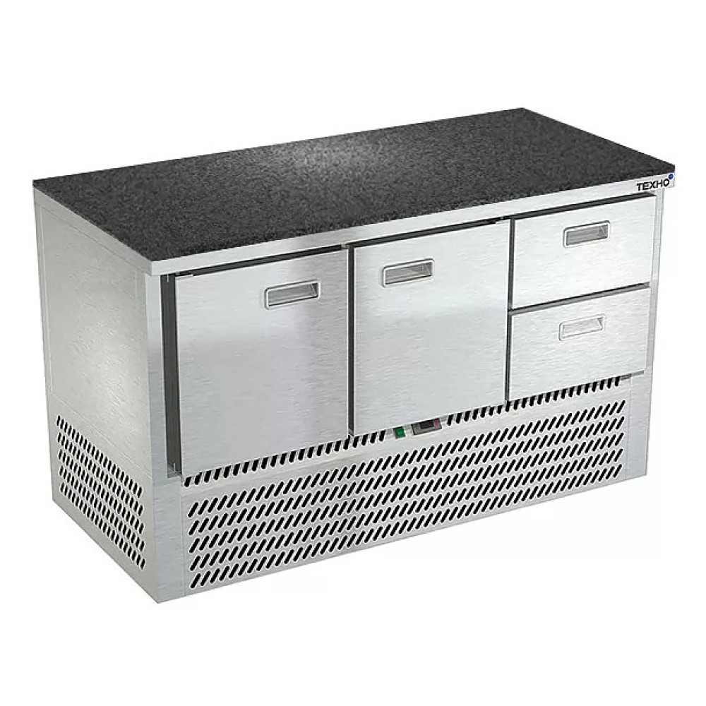 Холодильный стол Техно-ТТ СПН/О-322/22-1407 предназначен для обработки, охлаждения и кратковременного хранения продуктов и напитков на предприятиях общественного питания и торговли. Модель оснащена компрессором (Испания), каждая секция - направляющими, решетчатой полкой, дверь и ящики - доводчиками. Корпус выполнен из нержавеющей стали, задняя стенка и дно - из оцинкованной стали. Столешница из камня.