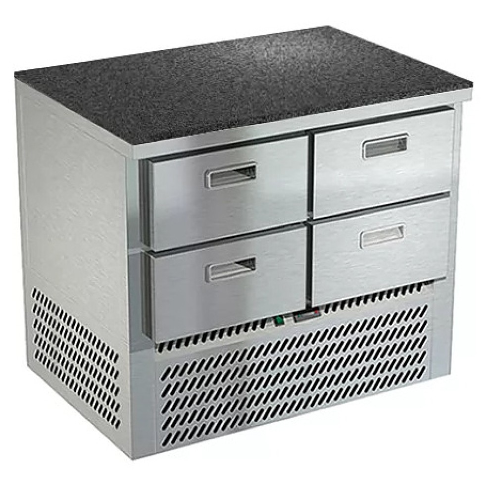 Холодильный стол Техно-ТТ СПН/О-323/04-1007 предназначен для раскатки теста, обработки, охлаждения и кратковременного хранения продуктов и напитков на предприятиях общественного питания и торговли. Модель оснащена компрессором (Испания), каждый ящик - доводчиками. Корпус выполнен из нержавеющей стали, задняя стенка - из оцинкованной стали и столешница из камня.
