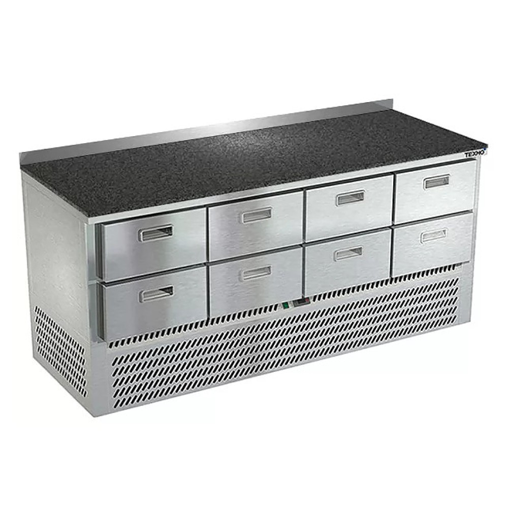 Холодильный стол Техно-ТТ СПН/О-423/08-1907 предназначен для раскатки теста, обработки, охлаждения и кратковременного хранения продуктов и напитков на предприятиях общественного питания и торговли. Модель оснащена компрессором (Испания), двери и ящики - направляющими с доводчиками. Корпус выполнен из нержавеющей стали, столешница из камня, задняя стенка и дно - из оцинкованной стали.