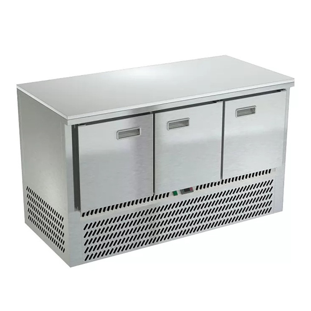 Холодильный стол Техно-ТТ СПН/О-521/30-1406 предназначен для обработки, охлаждения и кратковременного хранения продуктов и напитков на предприятиях общественного питания и торговли. Модель оснащена компрессором (Испания), каждая секция - направляющими и сетчатой полкой, двери и ящики - доводчиками. Корпус выполнен из нержавеющей стали марки AISI 430, столешница из полипропилена, задняя стенка и дно - из оцинкованной стали.
