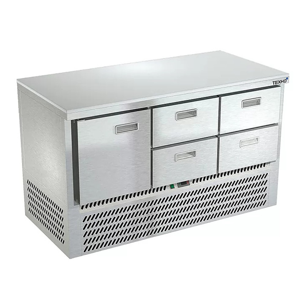 Холодильный стол Техно-ТТ СПН/О-522/14-1406 предназначен для обработки, охлаждения и кратковременного хранения продуктов и напитков на предприятиях общественного питания и торговли. Модель оснащена компрессором (Испания), каждая секция - направляющими и сетчатой полкой, двери и ящики - доводчиками. Корпус выполнен из нержавеющей стали марки AISI 430, столешница из полипропилена, задняя стенка и дно - из оцинкованной стали.