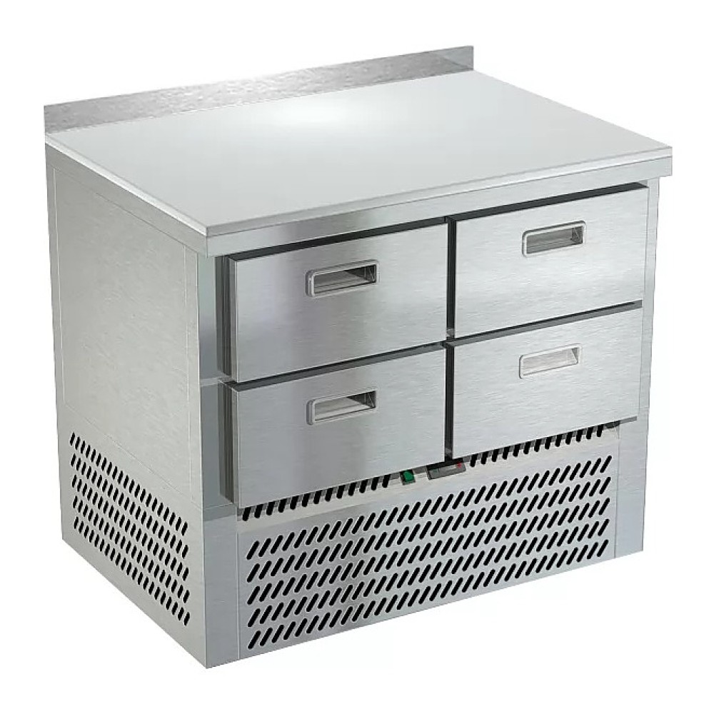 Холодильный стол Техно-ТТ СПН/О-623/04-1006 предназначен для обработки, охлаждения и кратковременного хранения продуктов и напитков на предприятиях общественного питания и торговли. Модель оснащена бортом, компрессором (Испания), каждая секция - направляющими и сетчатой полкой, двери и ящики - доводчиками. Корпус выполнен из нержавеющей стали марки AISI 430, столешница из полипропилена, задняя стенка и дно - из оцинкованной стали.