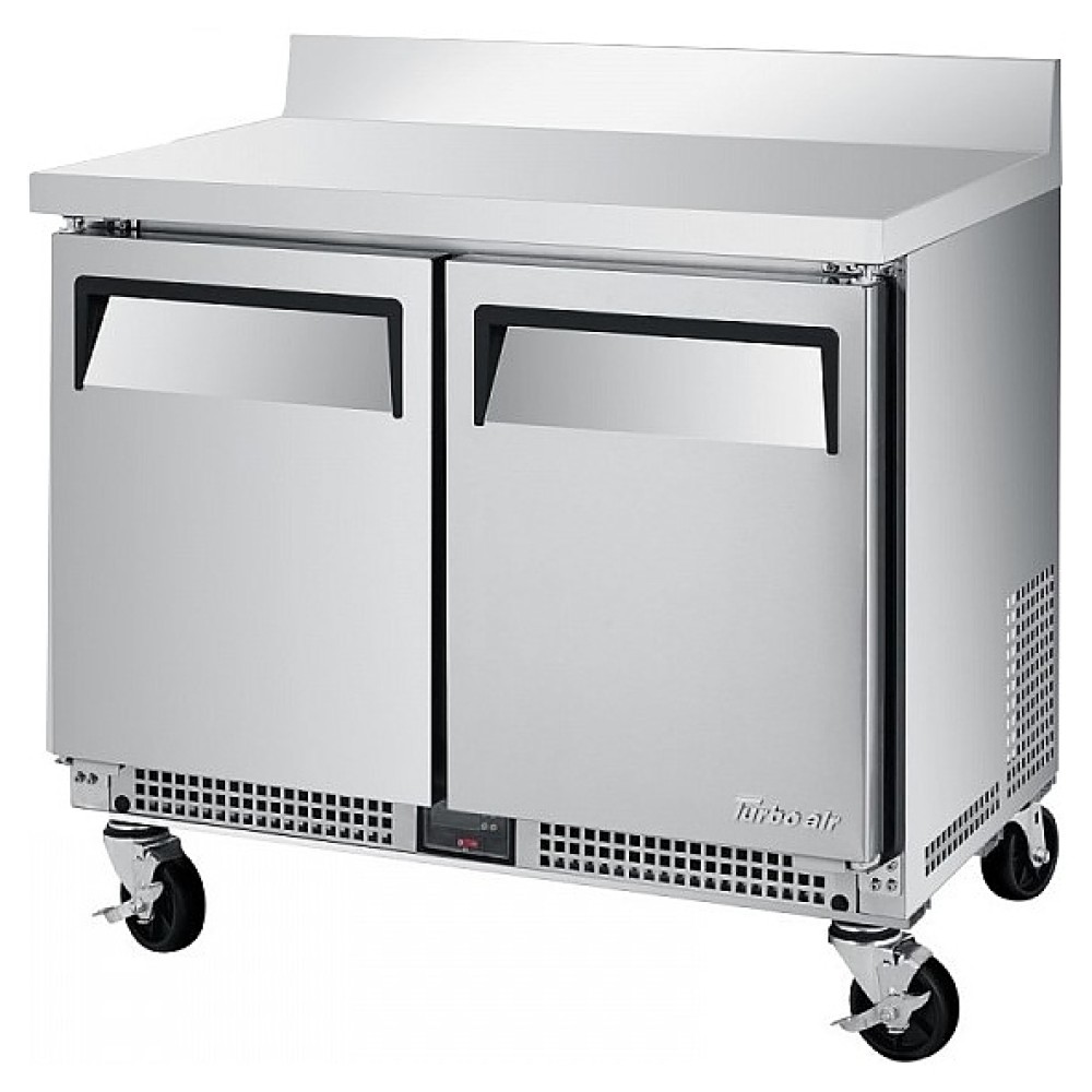 Холодильный стол Turbo air CMWR-34S предназначен для хранения и обработки предварительно охлажденных мясных и рыбных полуфабрикатов, заготовок для салатов, молочной продукции, охлажденных напитков и других пищевых продуктов на предприятиях общественного питания и торговли. Модель оснащена 2 дверцами с эргономичными ручками, 2 регулируемыми полками, и 4 колесами. Корпус выполнен из нержавеющей стали (задняя и нижняя части из оцинкованной стали), пол - из нержавеющей стали с алюминиевыми сторонами и задней частью, полки - из толстой стальной проволоки с виниловым покрытием, уплотнение - из ABS-пластика, изоляция - из полиуретана высокой плотности.