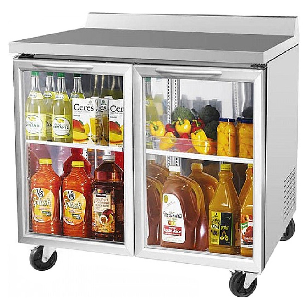 Холодильный стол Turbo air CMWR-36L-G предназначен для хранения и обработки предварительно охлажденных мясных и рыбных полуфабрикатов, заготовок для салатов, молочной продукции, охлажденных напитков и других пищевых продуктов на предприятиях общественного питания и торговли. Модель оснащена 2 дверцами с двойными стеклопакетами и слоем прозрачной теплоизоляционной пленки, 2 регулируемыми полками, и 4 колесами. Корпус выполнен из нержавеющей стали (гальванизированная сталь на оборотной стороне и внизу), пол - из нержавеющей стали с алюминиевыми вставками по бокам и сзади, полка - из толстой стальной проволоки с виниловым покрытием, дверные петли -из высококачественной нержавеющей стали, уплотнение - из ABS-пластика.