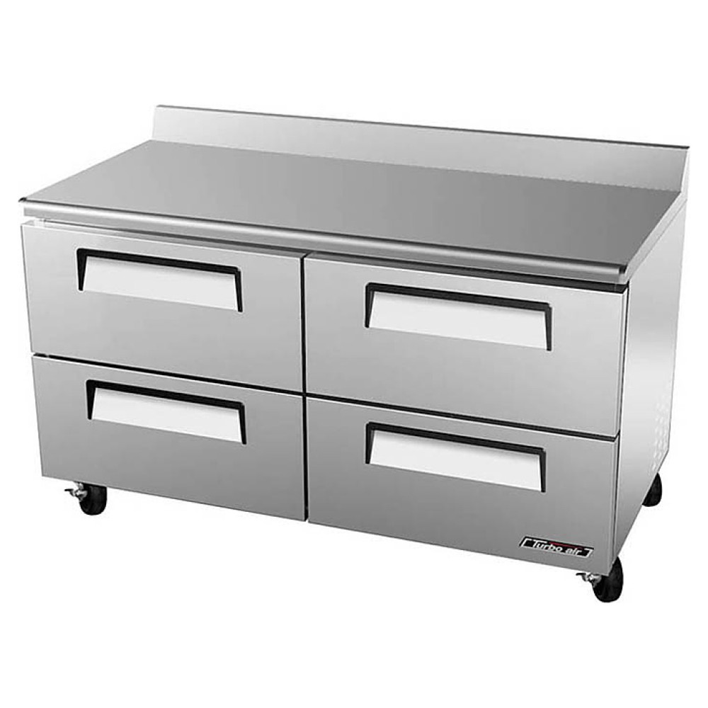Холодильный стол Turbo air CMWR-60-2D-4 предназначен для раскатки теста, обработки, охлаждения и кратковременного хранения продуктов и напитков на предприятиях общественного питания и торговли. Корпус выполнен из нержавеющей стали (гальванизированная сталь на оборотной стороне и внизу) с применением пожаробезопасных стенок толщиной 60 мм, уплотнения - из АБС-пластика, пол - из нержавеющей стали с алюминиевыми вставками по бокам и сзади оборудования, регулируемые полки - из толстой стальной проволоки с виниловым покрытием, тройные направляющие - из высококачественной нержавеющей стали.