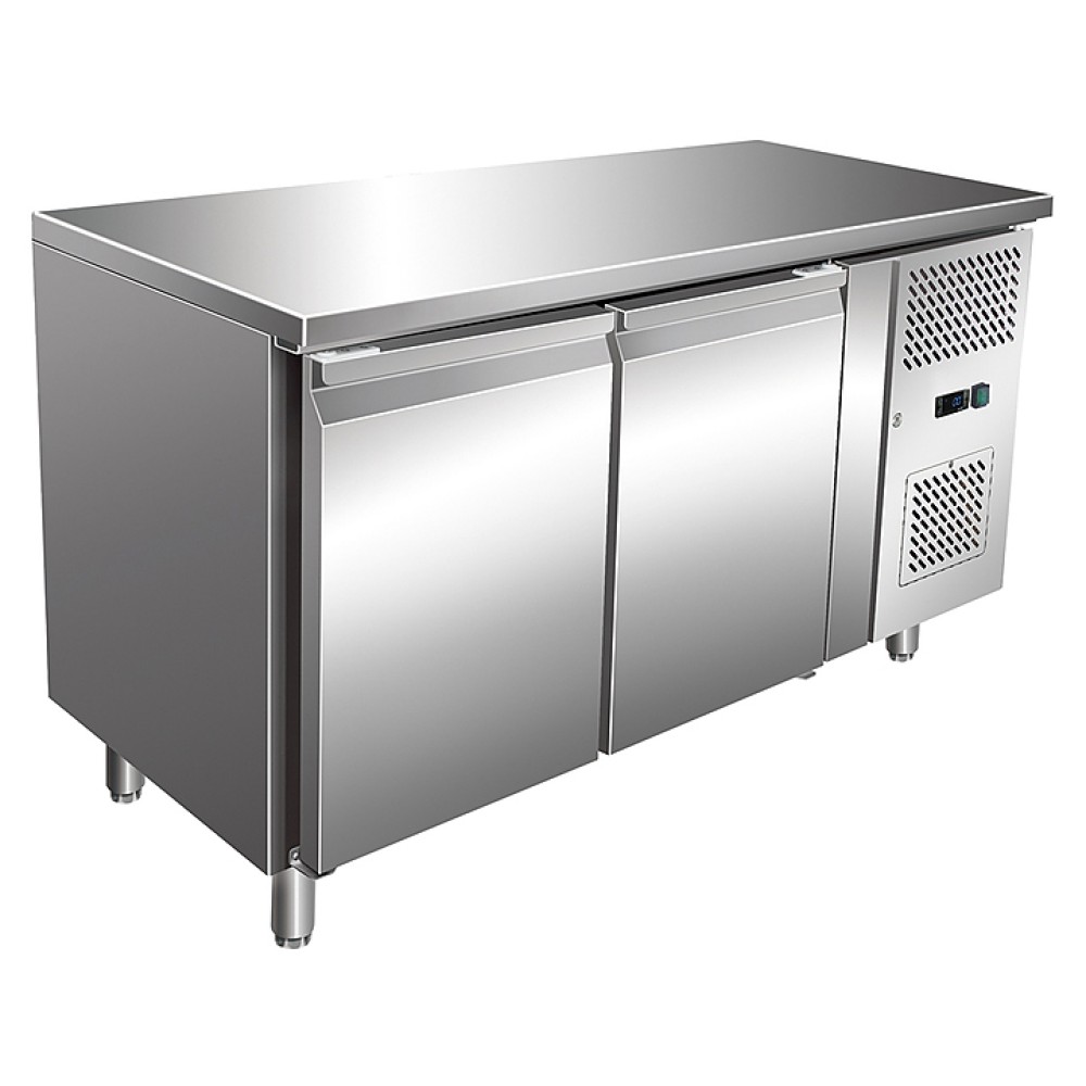 Холодильный стол VIATTO GN2100TN предназначен для обработки, охлаждения и кратковременного хранения пищевых продуктов на предприятиях общественного питания и торговли. Модель оснащена расположенным сбоку агрегатным отсеком, электронным термостатом, столешницей, 2 холодильными камерами с распашными дверьми, 2 полками для гастроемкостей, устойчивыми опорами, кабелем питания и панелью управления с цифровым дисплеем. Корпус и столешница выполнены из высококачественной нержавеющей стали.