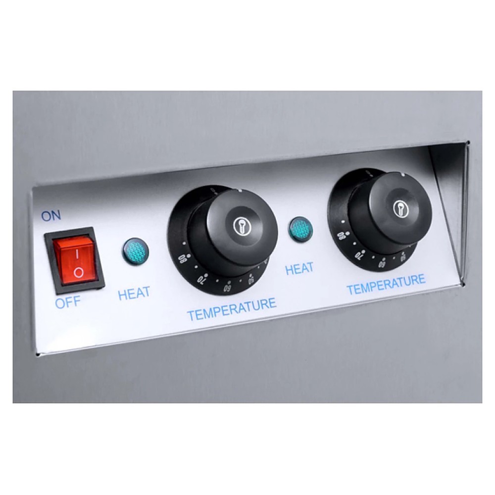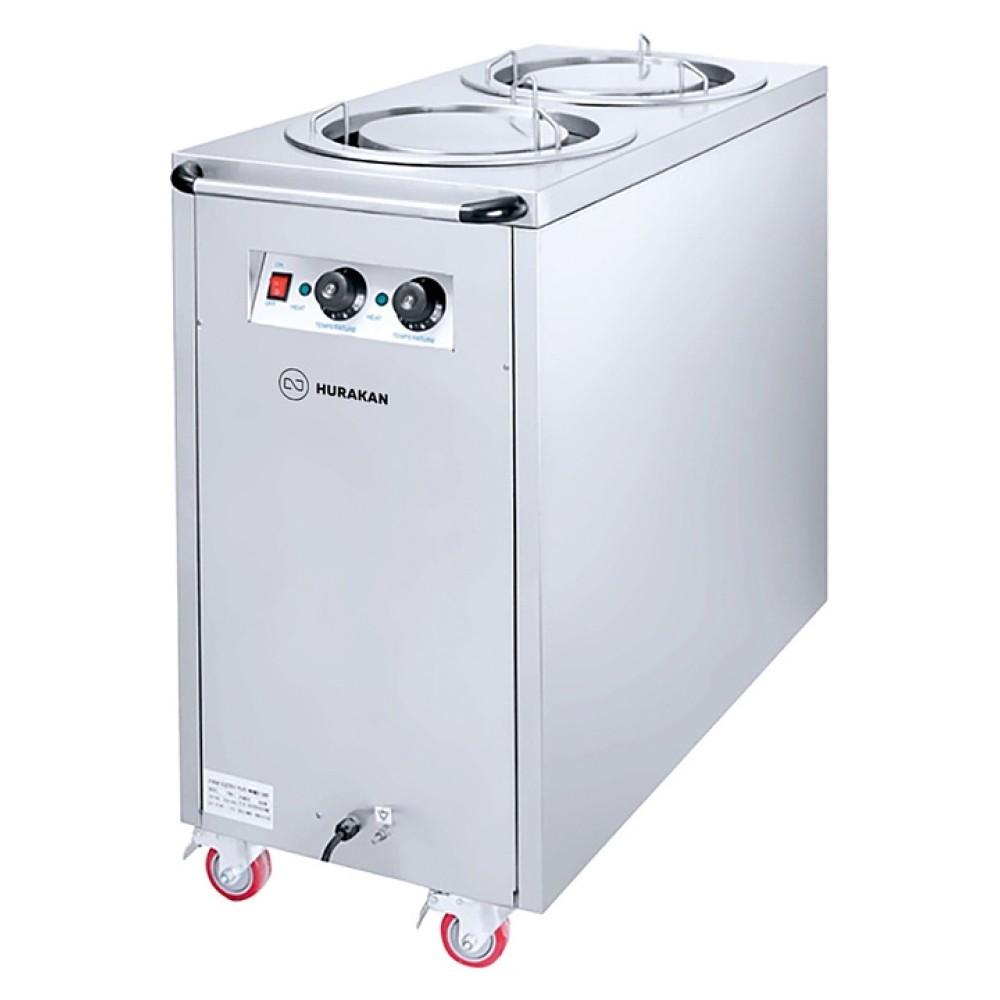 Шкаф для подогрева тарелок Hurakan HKN-TSH2 используется на предприятиях общественного питания и торговли. Модель оснащена 2 бункерами для тарелок, быстрой и простой системой настройки пружин и 4 колесами для удобной траспортировки, 2 из которых с тормозами.