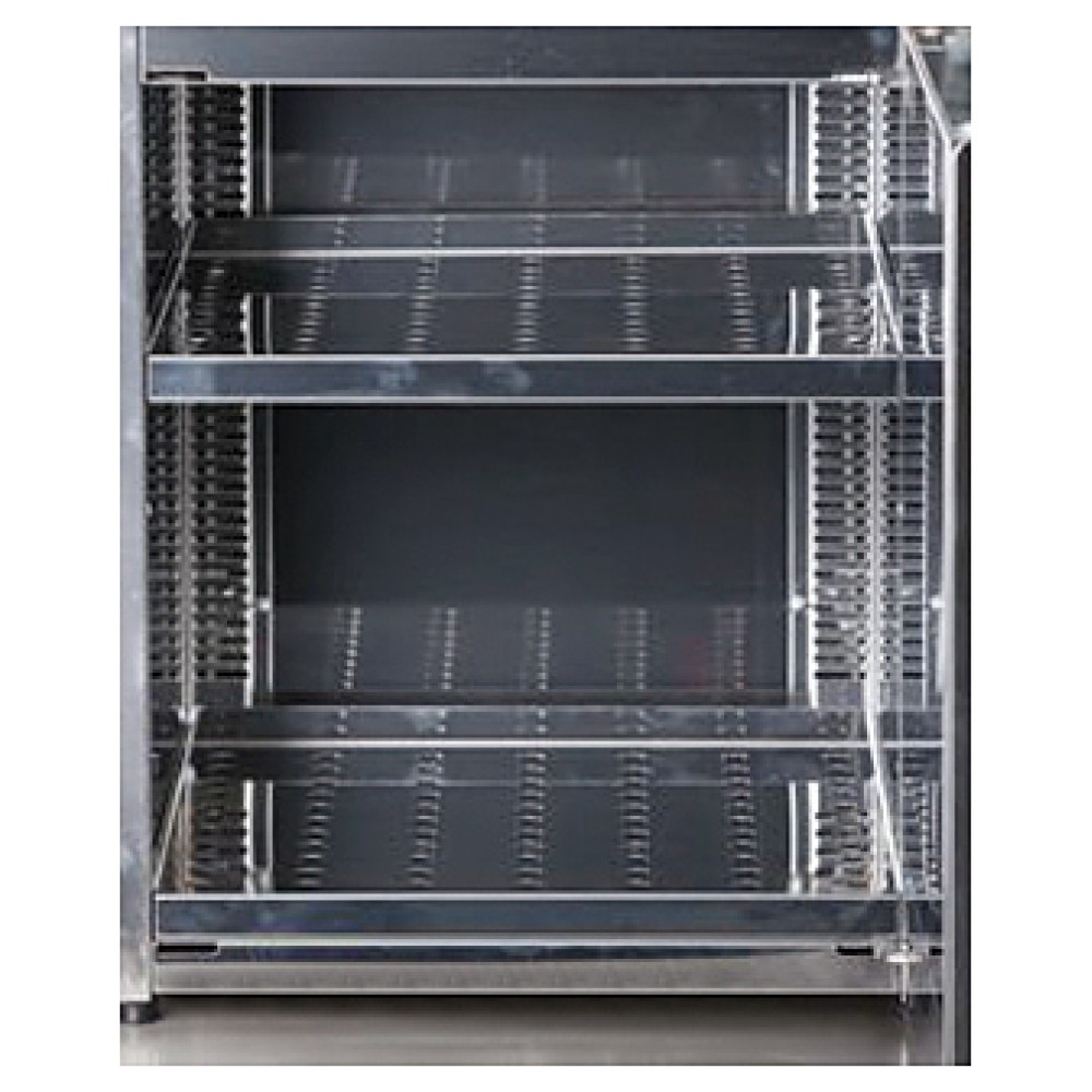 Тепловой шкаф Azimut OTS 45 предназначен для подогрева тарелок на предприятиях общественного питания и торговли. Модель со статическим нагревом оснащена перенавешиваемой дверью и промежуточной перфорированной полкой. Корпус с двойными изолированными стенками выполнен из нержавеющей стали.