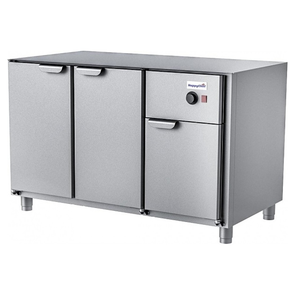 Тепловой стол HappyChef TH G 1-1-P1 предназначен для хранения горячих приготовленных блюд и предварительно разогретых продуктов на предприятиях общественного питания и торговли. Модель оснащена секцией справа со съемной влагозащищенной тепловой кассетой (Россия) сверху и распашной дверью, 2 секциями слева с распашными дверьми и электромеханической панелью управления, двери имеют короткие горизонтальные рукоятки в верхней части. Корпус выполнен из нержавеющей стали марки AISI 430.