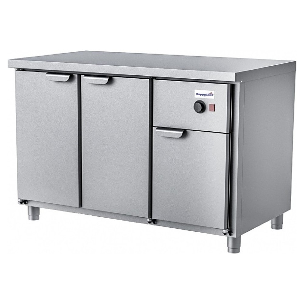 Тепловой стол HappyChef TH GN 1-1-P1 предназначен для хранения горячих приготовленных блюд и предварительно разогретых продуктов на предприятиях общественного питания и торговли. Модель оснащена секцией справа со съемной влагозащищенной тепловой кассетой (Россия) сверху и распашной дверью, 2 секциями слева с распашными дверьми, усиленной нейтральной столешницей без борта и электромеханической панелью управления, двери имеют короткие горизонтальные рукоятки в верхней части. Корпус выполнен из нержавеющей стали марки AISI 430, столешница – из нержавеющей стали марки AISI 304.