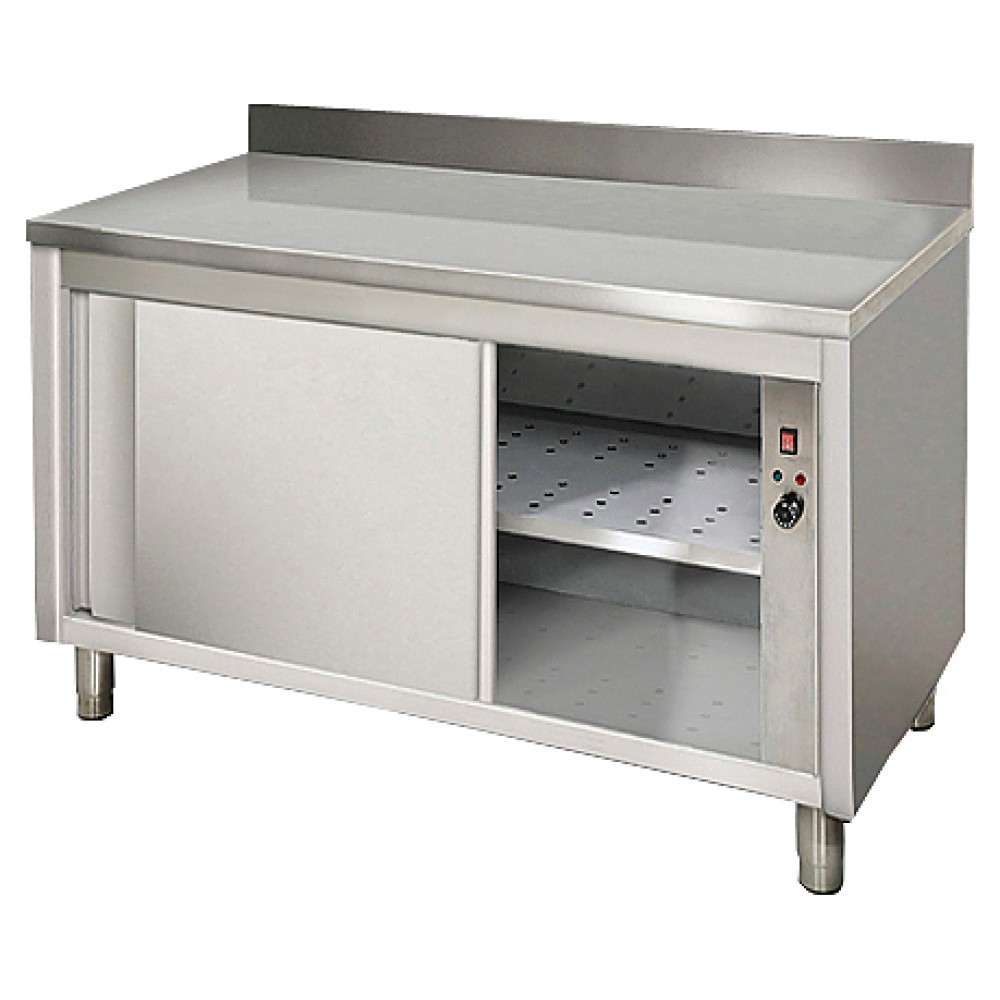 Тепловой стол Kocateq SWMR167A предназначен для подогрева тарелок перед выкладыванием на них продуктов питания и поддержания температуры на предприятиях общественного питания и торговли, в пекарнях и кондитерских. Модель оснащена механическим термостатом для регулировки температуры. Столешница выполнена из нержавеющей стали AISI 304 толщиной 1 мм, усилена вкладкой из ДСП с ламинированием открытой стороны, несущий каркас и нижняя полка - из нержавеющей стали AISI 201, ножки - из квадратной трубы, пятки - из пластика.