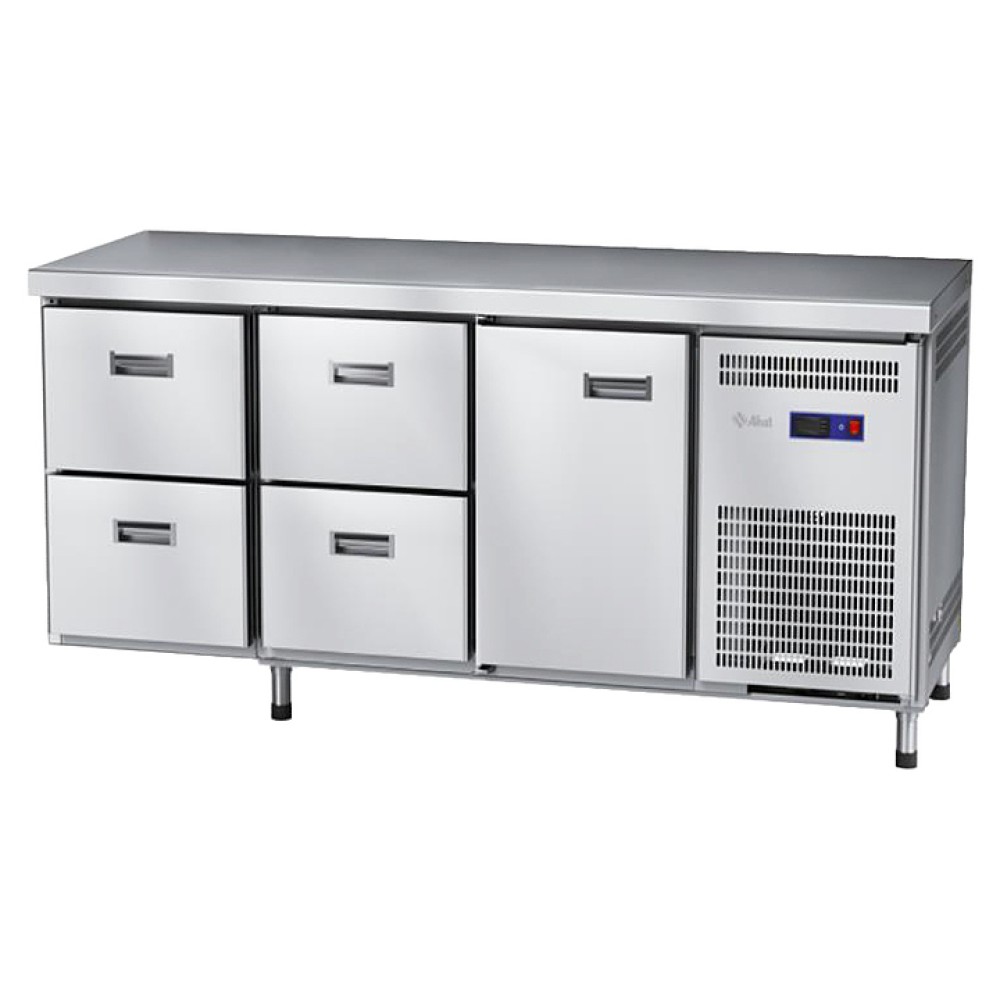 Морозильный стол Abat СХН-70-02 предназначен для раскатки теста, обработки ингредиентов для приготовления блюд, заморозки и хранения продуктов на предприятиях общественного питания и торговли. Модель оснащена регулируемой по высоте полкой-решеткой, 1 распашной дверцей и 4 выдвижными ящиками с уплотнителями с магнитной вставкой для обеспечения полной теплоизоляции и регулируемыми ножками.