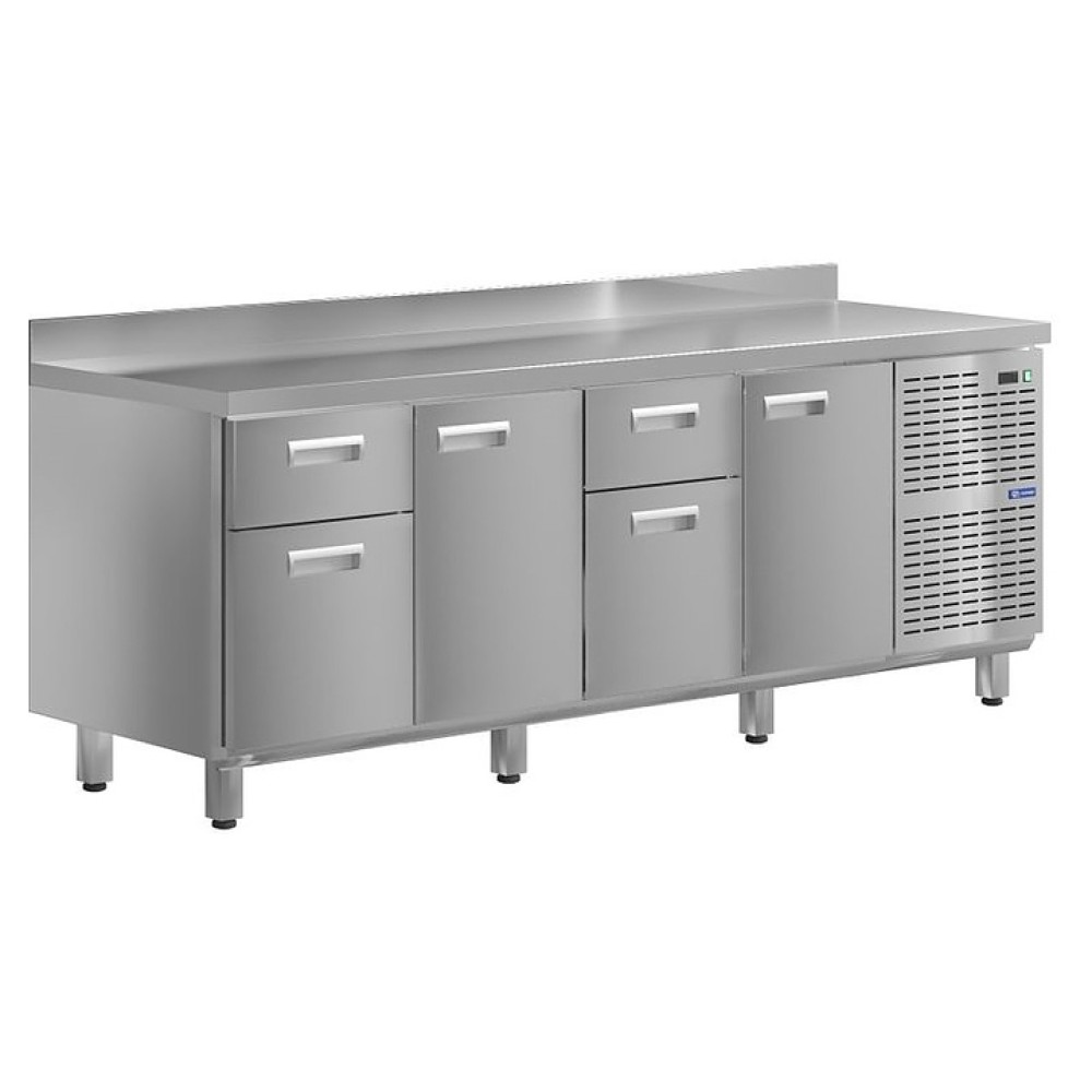 Морозильный стол KAYMAN KСМ-4141/60 предназначен для охлаждения, хранения и обработки пищевых продуктов в ресторанах, барах, кафе, столовых, на профессиональных кухнях и пищевых производствах. На прочной столешнице можно резать, раскатывать и отбивать полуфабрикаты. Модель оснащена 4 ящиками и 2 дверьми. Изделие выполнено из высококачественной нержавеющей стали, отличающейся прочностью и долговечностью.
