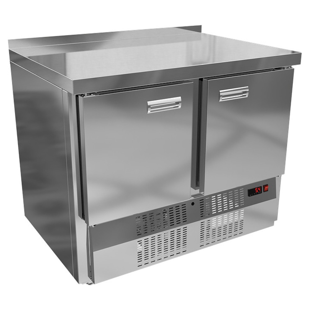 Морозильный стол KRONER СМб 2-100-70 предназначен для хранения предварительно замороженных пищевых продуктов и обработки ингредиентов в процессе приготовления блюд. Модель оснащена встроенным компрессорным холодильным агрегатом с нижним расположением, столешницей c задним бортом, электронной панелью управления и морозильной камерой с 2 секциями с распашными дверьми. Корпус и столешница выполнены из шлифованной нержавеющей стали, задняя стенка – из оцинкованной стали.