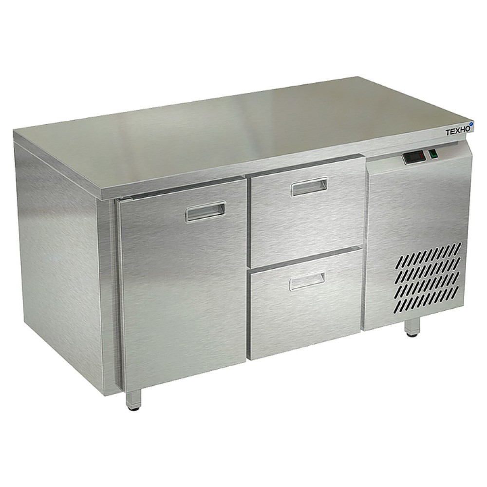 Морозильный стол Техно-ТТ СПБ/М-122/12-1307 предназначен для раскатки теста, обработки, заморозки и долговременного хранения продуктов, полуфабрикатов, напитков и мороженого на предприятиях общественного питания и торговли. Модель оснащена 1 секцией с дверью и регулируемой полкой-решеткой, 1 секцией с 2 ящиками, направляющими с доводчиками (Австрия), петлями-доводчиками (Польша) и круглыми ножками, регулируемыми по высоте на 50 мм (Италия). Корпус и столешница выполнены из нержавеющей стали AISI 430, задняя стенка и дно - из оцинкованной стали.