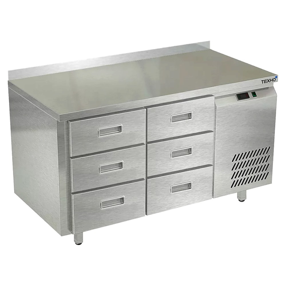 Морозильный стол Техно-ТТ СПБ/М-223/06-1307 предназначен для раскатки теста, обработки, заморозки и долговременного хранения продуктов, полуфабрикатов, напитков и мороженого на предприятиях общественного питания и торговли. Модель оснащена 2 секциями с 6 ящиками, направляющими с доводчиками (Австрия), бортом и круглыми ножками, регулируемыми по высоте на 50 мм (Италия). Корпус и столешница выполнены из нержавеющей стали AISI 430, задняя стенка и дно - из оцинкованной стали.