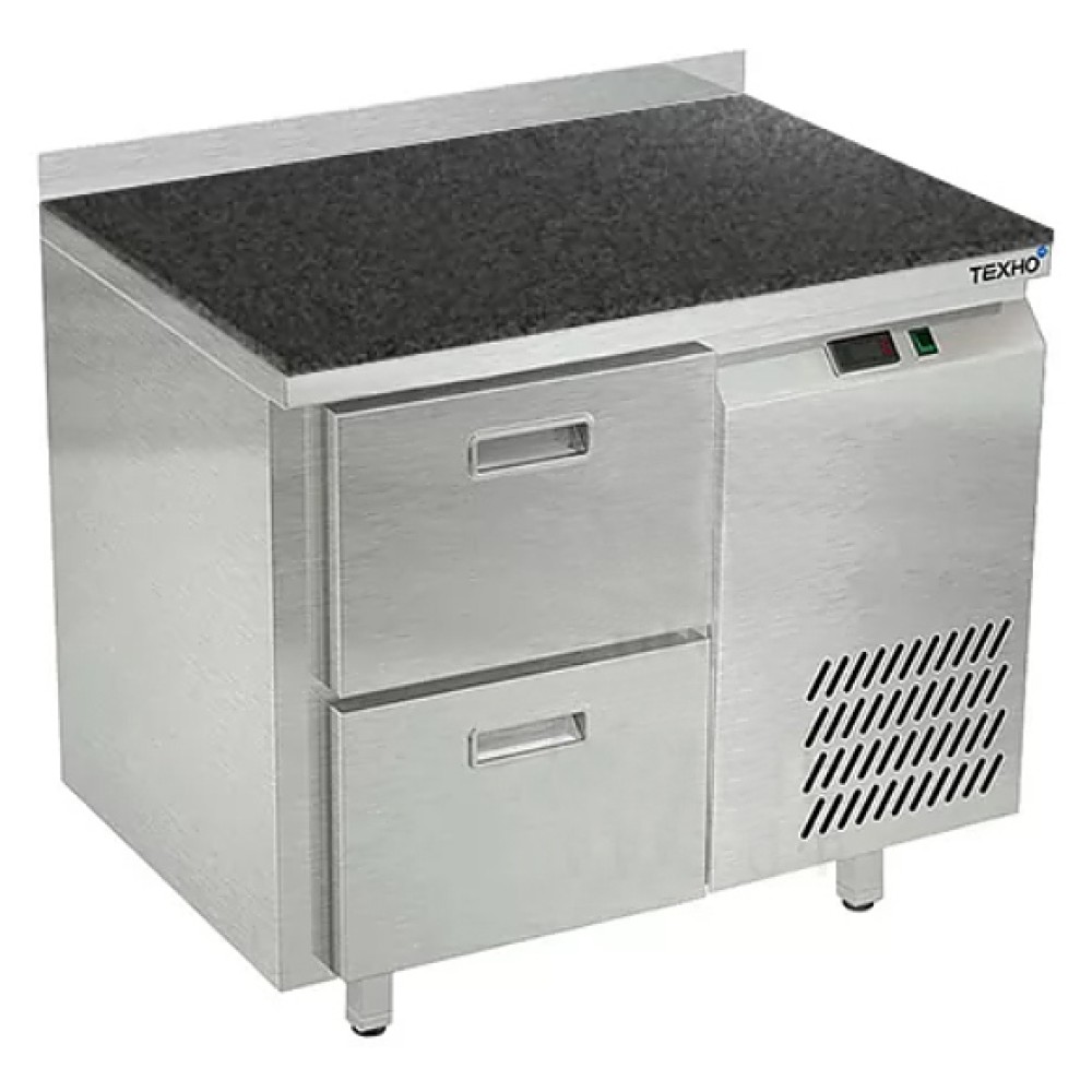 Морозильный стол Техно-ТТ СПБ/М-423/02-907 предназначен для раскатки теста, обработки, заморозки и долговременного хранения продуктов, полуфабрикатов, напитков и мороженого на предприятиях общественного питания и торговли. Модель оснащена 1 секцией с 2 ящиками, направляющими с доводчиками (Австрия), бортом и круглыми ножками, регулируемыми по высоте на 50 мм (Италия). Корпус выполнен из нержавеющей стали AISI 430, задняя стенка и дно - из оцинкованной стали, столешница - из камня.