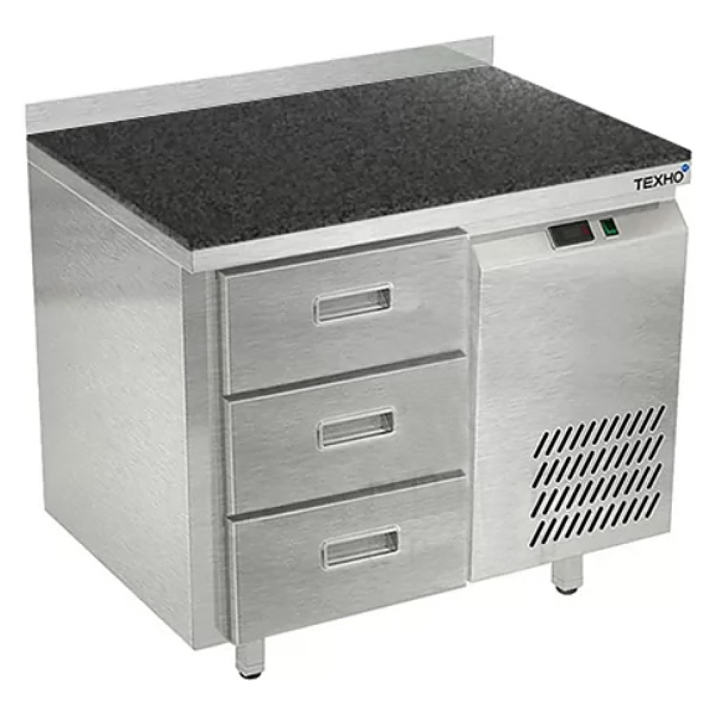 Морозильный стол Техно-ТТ СПБ/М-423/03-906 предназначен для раскатки теста, обработки, заморозки и долговременного хранения продуктов, полуфабрикатов, напитков и мороженого на предприятиях общественного питания и торговли. Модель оснащена 1 секцией с 3 ящиками, направляющими с доводчиками (Австрия), бортом и круглыми ножками, регулируемыми по высоте на 50 мм (Италия). Корпус выполнен из нержавеющей стали AISI 430, задняя стенка и дно - из оцинкованной стали, столешница - из камня.