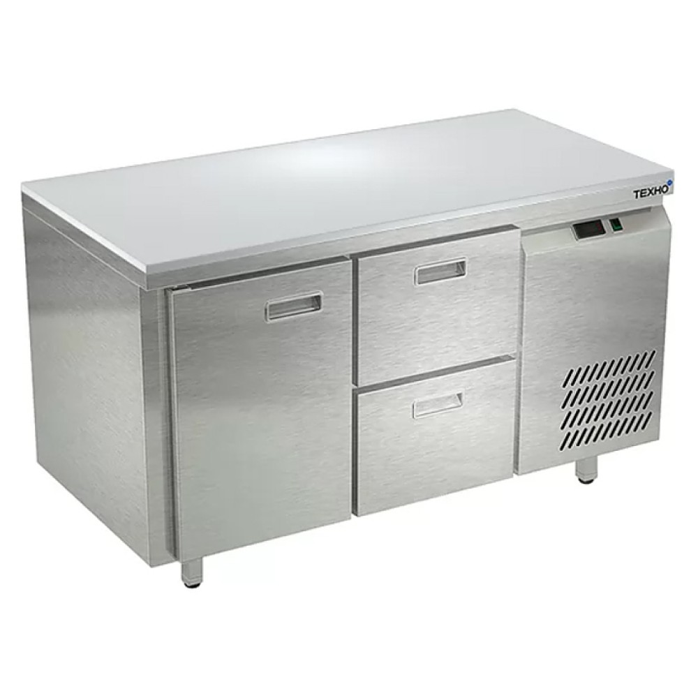 Морозильный стол Техно-ТТ СПБ/М-522/12-1307 предназначен для раскатки теста, обработки, заморозки и долговременного хранения продуктов, полуфабрикатов, напитков и мороженого на предприятиях общественного питания и торговли. Модель оснащена 1 секцией с дверью и регулируемой полкой-решеткой, 1 секцией с 2 ящиками, направляющими с доводчиками (Австрия), петлями-доводчиками (Польша) и круглыми ножками, регулируемыми по высоте на 50 мм (Италия). Корпус выполнен из нержавеющей стали AISI 430, задняя стенка и дно - из оцинкованной стали, столешница - из полипропилена.