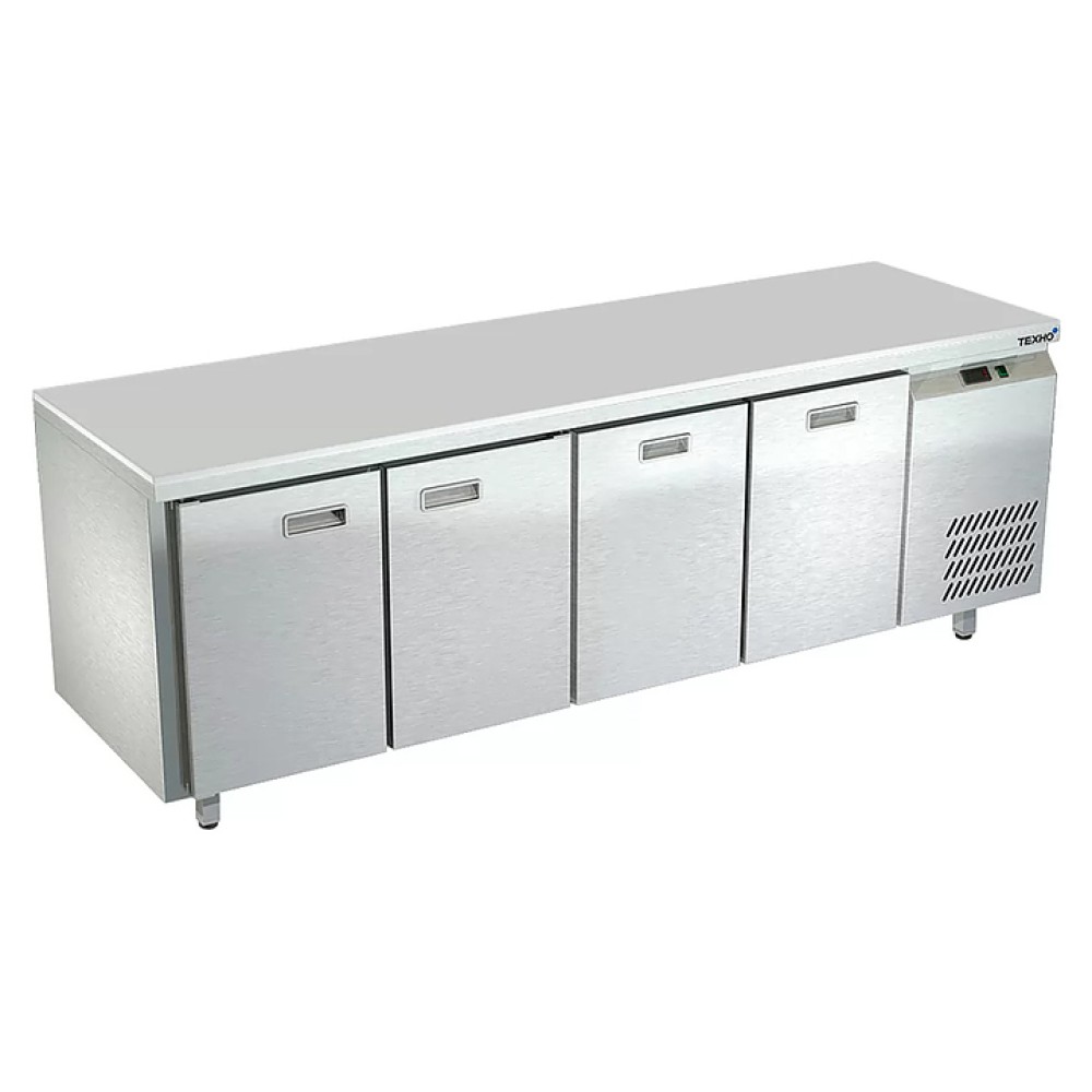 Морозильный стол Техно-ТТ СПБ/М-522/22-2207 предназначен для раскатки теста, обработки, заморозки и долговременного хранения продуктов, полуфабрикатов, напитков и мороженого на предприятиях общественного питания и торговли. Модель оснащена 2 секциями с дверьми и регулируемой полкой-решеткой, 2 секциями с 2 ящиками, направляющими с доводчиками (Австрия), петлями-доводчиками (Польша) и круглыми ножками, регулируемыми по высоте на 50 мм (Италия). Корпус выполнен из нержавеющей стали AISI 430, задняя стенка и дно - из оцинкованной стали, столешница - из полипропилена.