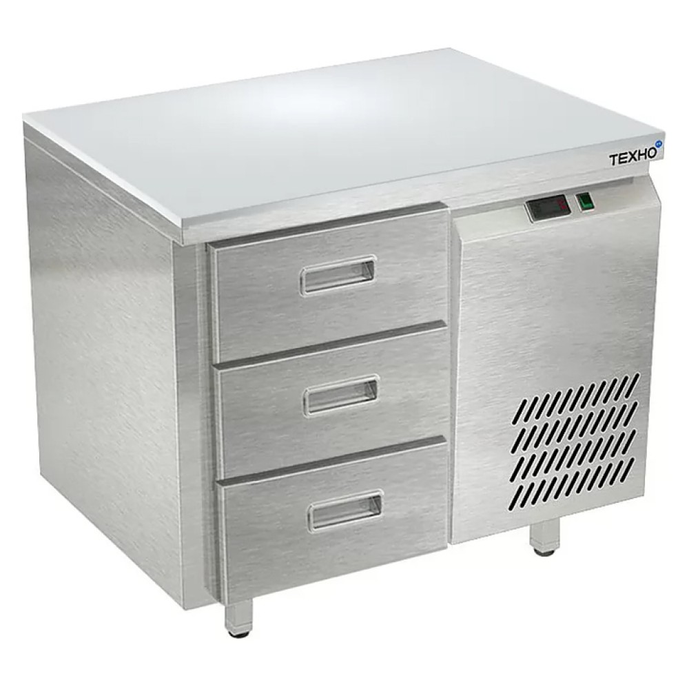 Морозильный стол Техно-ТТ СПБ/М-523/03-906 предназначен для раскатки теста, обработки, заморозки и долговременного хранения продуктов, полуфабрикатов, напитков и мороженого на предприятиях общественного питания и торговли. Модель оснащена 1 секцией с 3 ящиками, направляющими с доводчиками (Австрия) и круглыми ножками, регулируемыми по высоте на 50 мм (Италия). Корпус выполнен из нержавеющей стали AISI 430, задняя стенка и дно - из оцинкованной стали, столешница - из полипропилена.