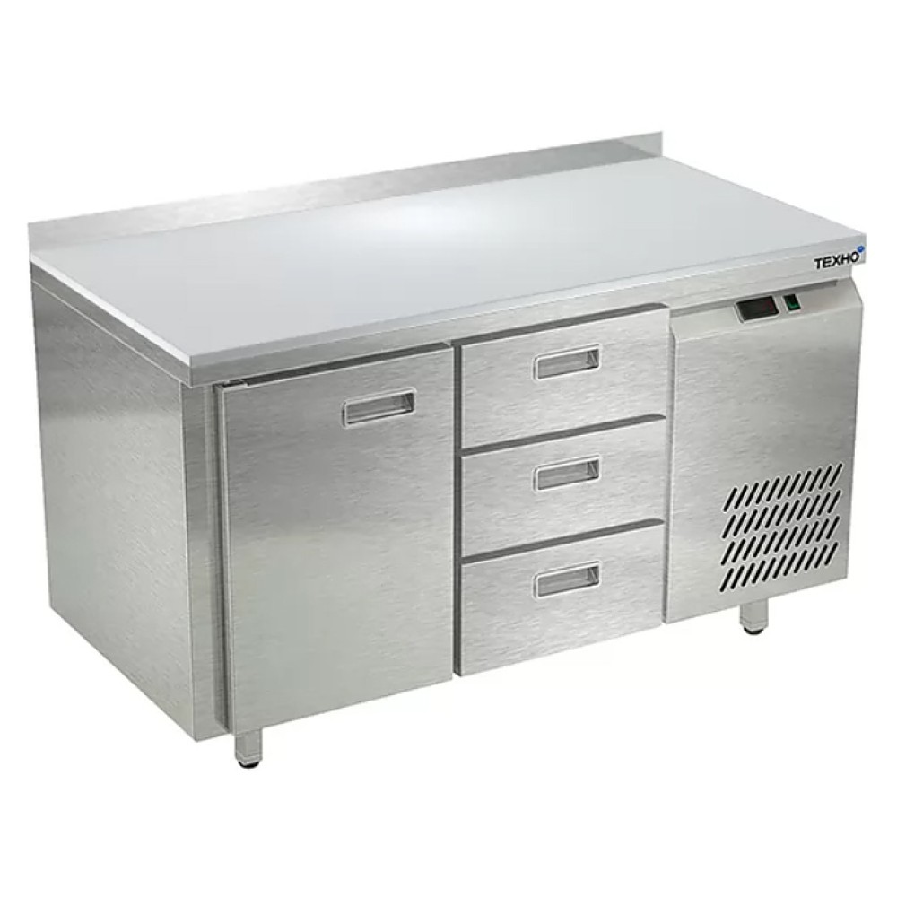 Морозильный стол Техно-ТТ СПБ/М-622/13-1306 предназначен для раскатки теста, обработки, заморозки и долговременного хранения продуктов, полуфабрикатов, напитков и мороженого на предприятиях общественного питания и торговли. Модель оснащена 1 секцией с дверью и регулируемой полкой-решеткой, 1 секцией с 3 ящиками, направляющими с доводчиками (Австрия), петлями-доводчиками (Польша), бортом и круглыми ножками, регулируемыми по высоте на 50 мм (Италия). Корпус выполнен из нержавеющей стали AISI 430, задняя стенка и дно - из оцинкованной стали, столешница - из полипропилена.