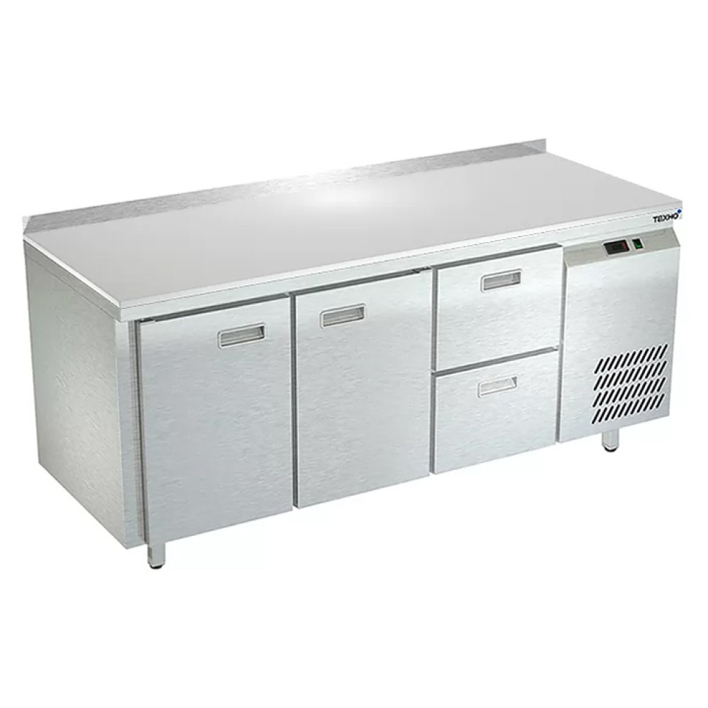 Морозильный стол Техно-ТТ СПБ/М-622/22-1807 предназначен для раскатки теста, обработки, заморозки и долговременного хранения продуктов, полуфабрикатов, напитков и мороженого на предприятиях общественного питания и торговли. Модель оснащена 2 секциями с 2 дверьми и регулируемой полкой-решеткой, 1 секцией с 2 ящиками, направляющими с доводчиками (Австрия), петлями-доводчиками (Польша), бортом и круглыми ножками, регулируемыми по высоте на 50 мм (Италия). Корпус выполнен из нержавеющей стали AISI 430, задняя стенка и дно - из оцинкованной стали, столешница - из полипропилена.