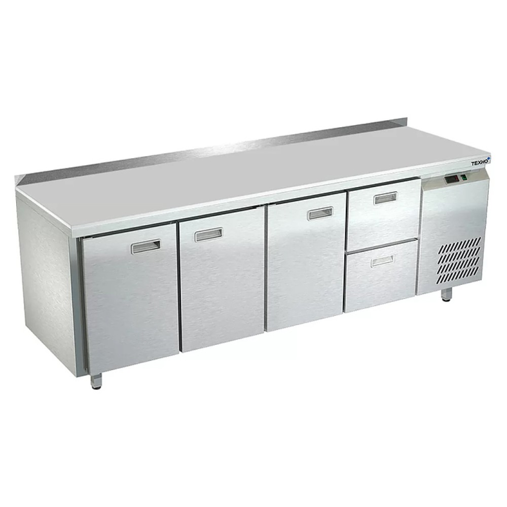 Морозильный стол Техно-ТТ СПБ/М-622/32-2206 предназначен для раскатки теста, обработки, заморозки и долговременного хранения продуктов, полуфабрикатов, напитков и мороженого на предприятиях общественного питания и торговли. Модель оснащена 3 секциями с 3 дверьми и регулируемой полкой-решеткой, 1 секцией с 2 ящиками, направляющими с доводчиками (Австрия), петлями-доводчиками (Польша), бортом и круглыми ножками, регулируемыми по высоте на 50 мм (Италия). Корпус выполнен из нержавеющей стали AISI 430, задняя стенка и дно - из оцинкованной стали, столешница - из полипропилена.