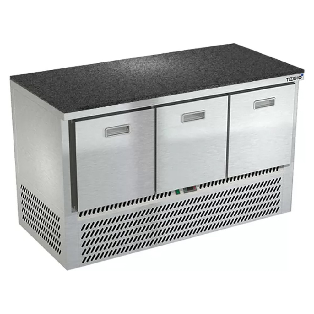 Морозильный стол Техно-ТТ СПН/М-323/03-1406 предназначен для раскатки теста, обработки, заморозки и долговременного хранения продуктов, полуфабрикатов, напитков и мороженого на предприятиях общественного питания и торговли. Модель оснащена компрессором, произведенным в Испании, 3 гастронормированными ящиками, направляющими с доводчиками (Австрия) и регулируемыми опорными ножками. Корпус выполнен из нержавеющей стали AISI 430, задняя стенка и дно - из оцинкованной стали, столешница - каменная.