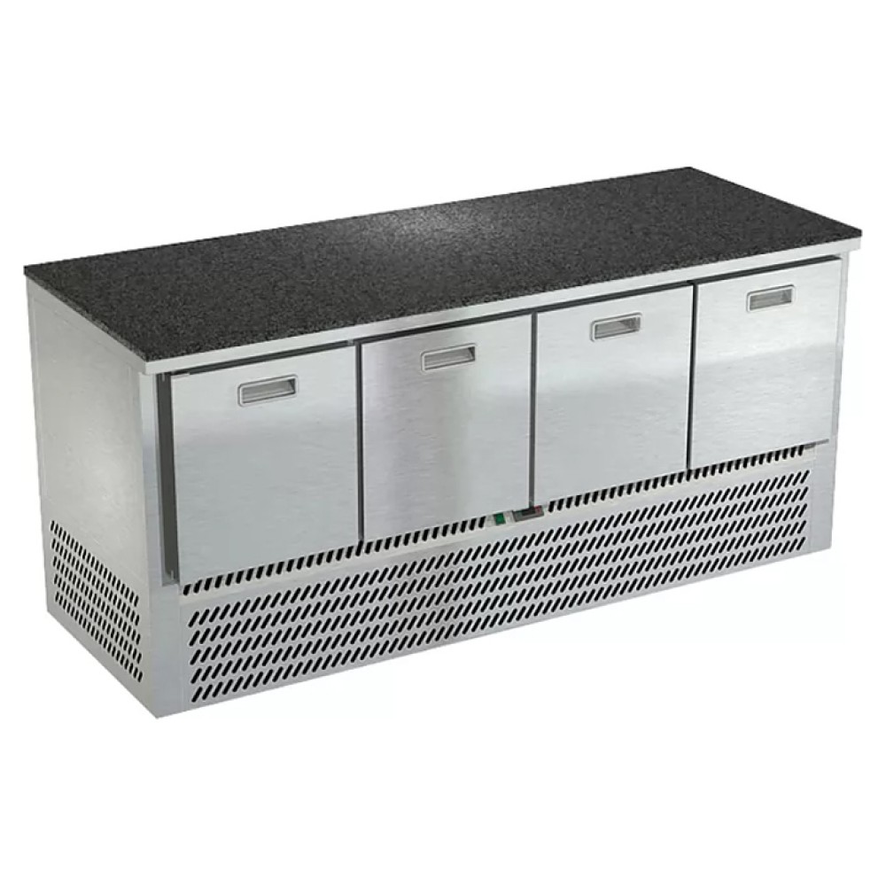 Морозильный стол Техно-ТТ СПН/М-323/04-1907 предназначен для раскатки теста, обработки, заморозки и долговременного хранения продуктов, полуфабрикатов, напитков и мороженого на предприятиях общественного питания и торговли. Модель оснащена компрессором, произведенным в Испании, 4 гастронормированными ящиками, направляющими с доводчиками (Австрия) и регулируемыми опорными ножками. Корпус выполнен из нержавеющей стали AISI 430, задняя стенка и дно - из оцинкованной стали, столешница - каменная.