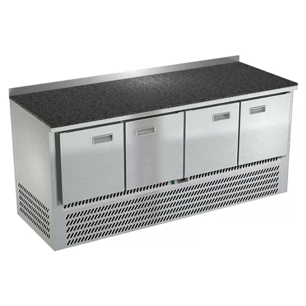 Морозильный стол Техно-ТТ СПН/М-421/40-1907 предназначен для раскатки теста, обработки, заморозки и долговременного хранения продуктов, полуфабрикатов, напитков и мороженого на предприятиях общественного питания и торговли. Модель оснащена компрессором, произведенным в Испании, 4 дверями с доводчиками (Польша), 4 регулируемыми по высоте полками-решетками и регулируемыми опорными ножками. Корпус выполнен из нержавеющей стали AISI 430, задняя стенка и дно - из оцинкованной стали, столешница - каменная.