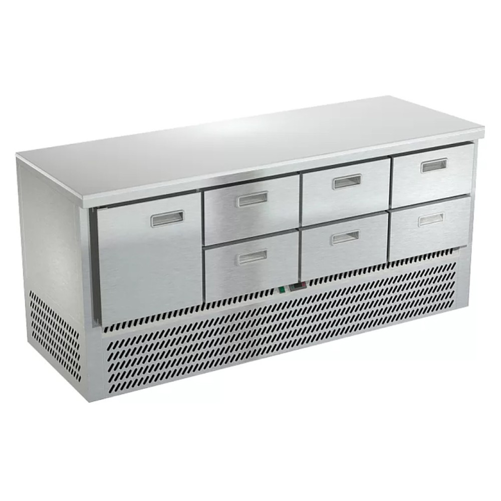Морозильный стол Техно-ТТ СПН/М-522/16-1906 предназначен для раскатки теста, обработки, заморозки и долговременного хранения продуктов, полуфабрикатов, напитков и мороженого на предприятиях общественного питания и торговли. Модель оснащена компрессором, произведенным в Испании, 1 дверью с доводчиком (Польша), 1 регулируемой по высоте полкой-решеткой, 6 гастронормированными ящиками, направляющими с доводчиками (Австрия) и регулируемыми опорными ножками. Корпус выполнен из нержавеющей стали AISI 430, задняя стенка и дно - из оцинкованной стали, столешница - из полипропилена.